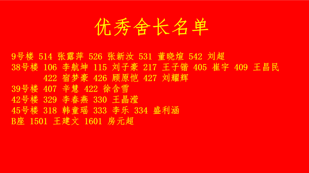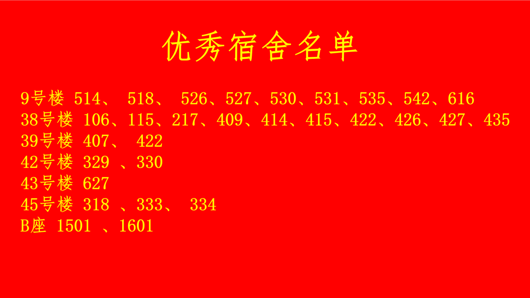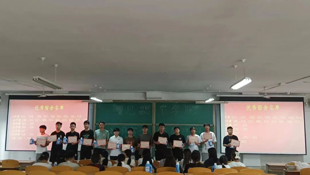 活动首先由由葛树喆老师宣读《贾思勰农学院文明宿舍评比标准》,王倩倩老师、王淑芹老师宣读文明宿舍名单、优秀舍长名单。本着公平公正公开的原则,最终评选出29个优秀宿舍、21位优秀舍长,由葛树喆老师、王倩倩老师为文明宿舍获奖者颁奖;刘建伟书记、王淑芹老师为优秀舍长获奖者颁奖。