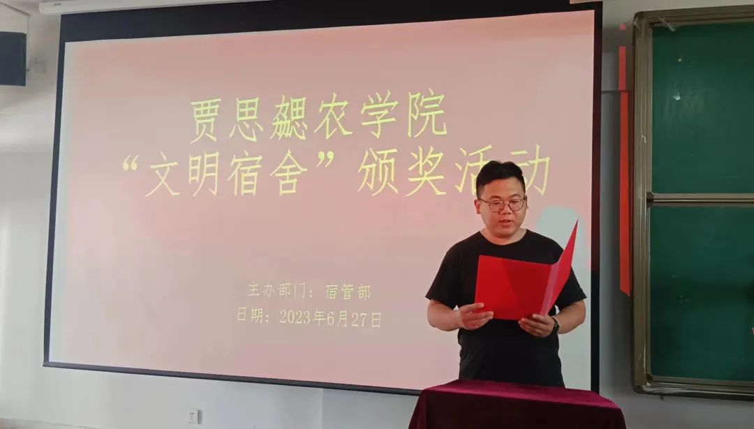 为增强学生的归属感和自豪感,丰富学生的校园文化生活,提升整体校园氛围,贾思勰农学院于6月27日举办“文明宿舍”颁奖活动。团总支书记刘建伟,辅导员葛树喆老师、王倩倩老师、王淑芹老师参加了此次颁奖活动。