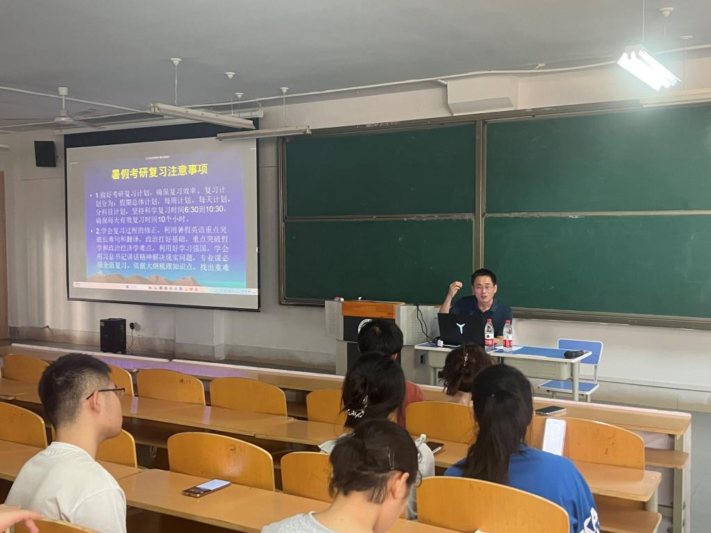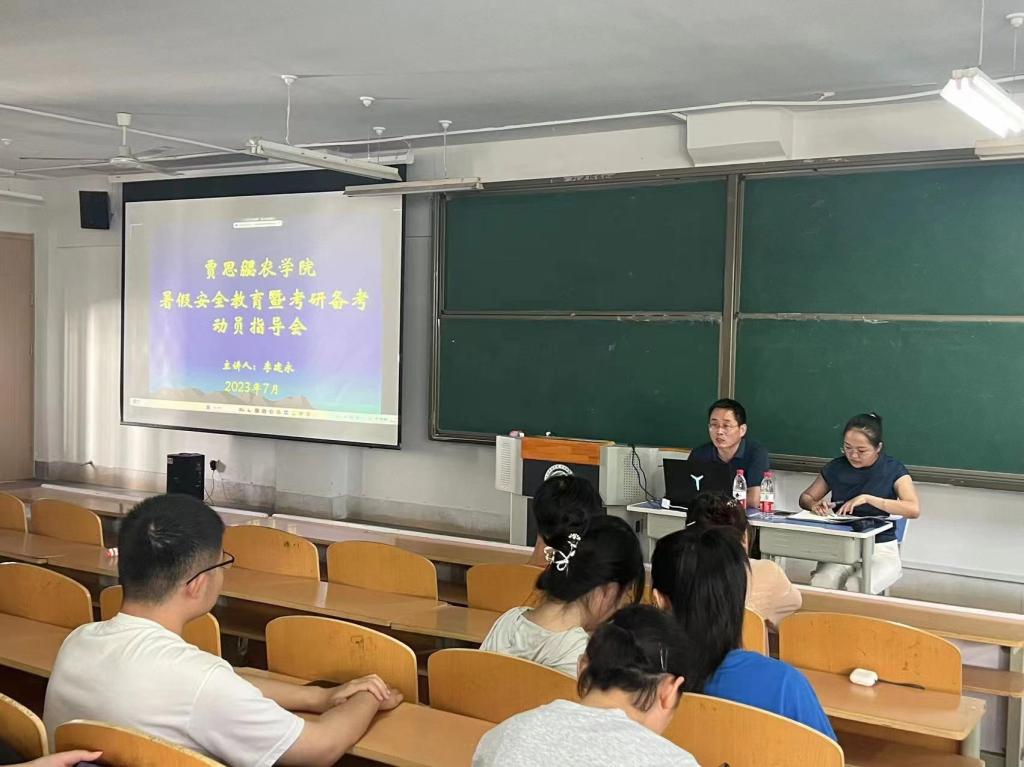 为进一步提高学生考研信心和学习效率,营造良好的考研氛围,全身心投入暑期复习备考。7月7日下午,贾思勰农学院在418合堂教室举办暑期留校考研学生安全教育暨考研动员会,农学院党支部副书记、考研负责人李建永,学生科科长、辅导员高凤及2020级暑假留校考研学生参加会议,离校考研学生参加线上会议。