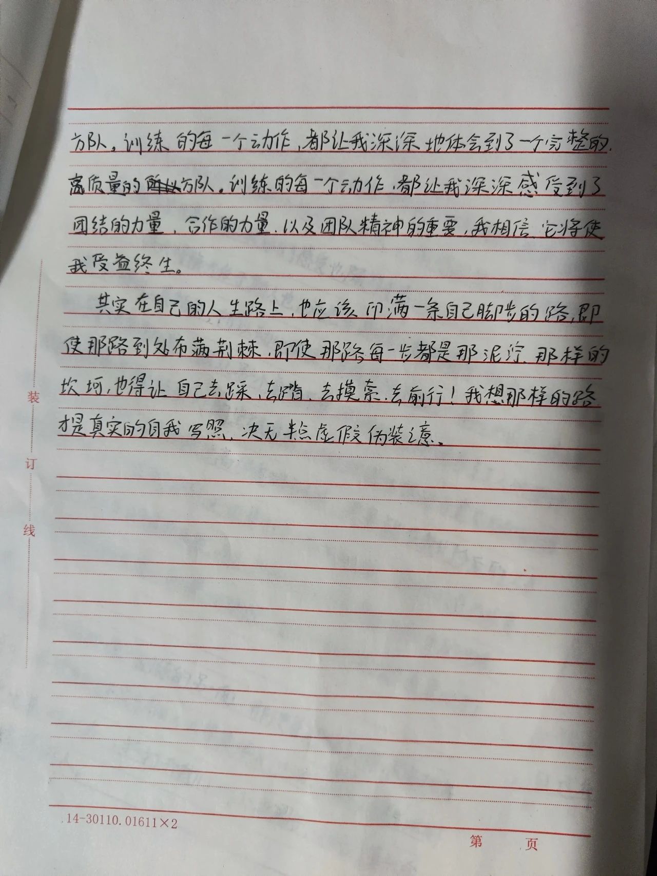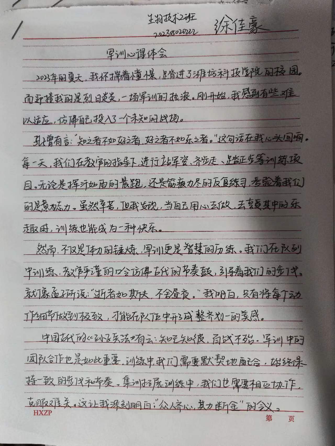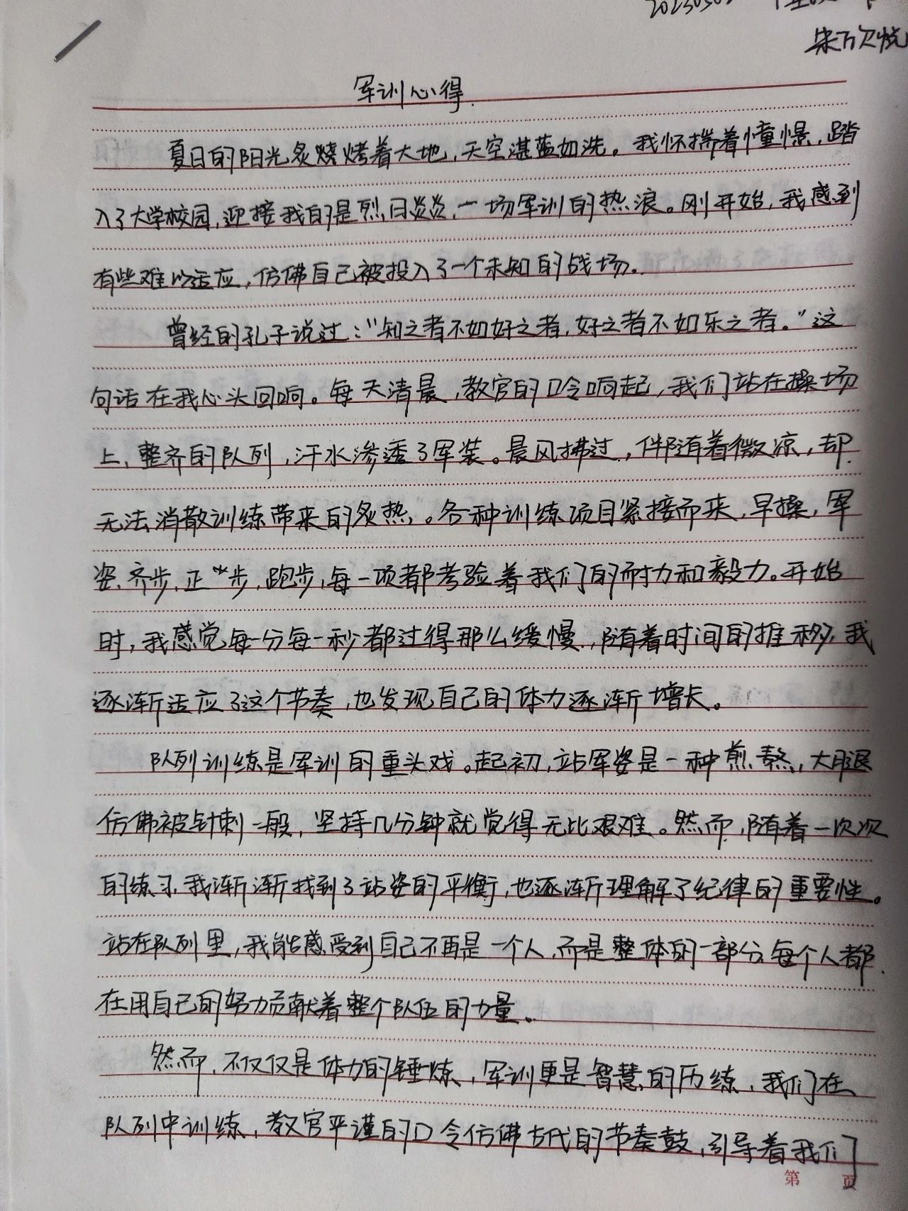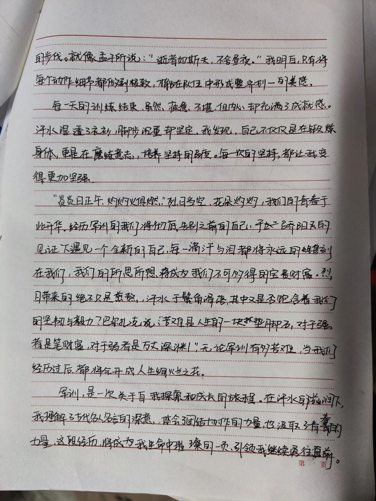 身披迷彩,青春正当时。在青春与迷彩的邂逅里,不知不觉,军训已经临近尾声。同学们在训练场上挥洒汗水,大家对这几天的军训生活都有一些感想。同学们用最真挚的语言书写自己的军训感受,记录属于他们的“独家记忆”。