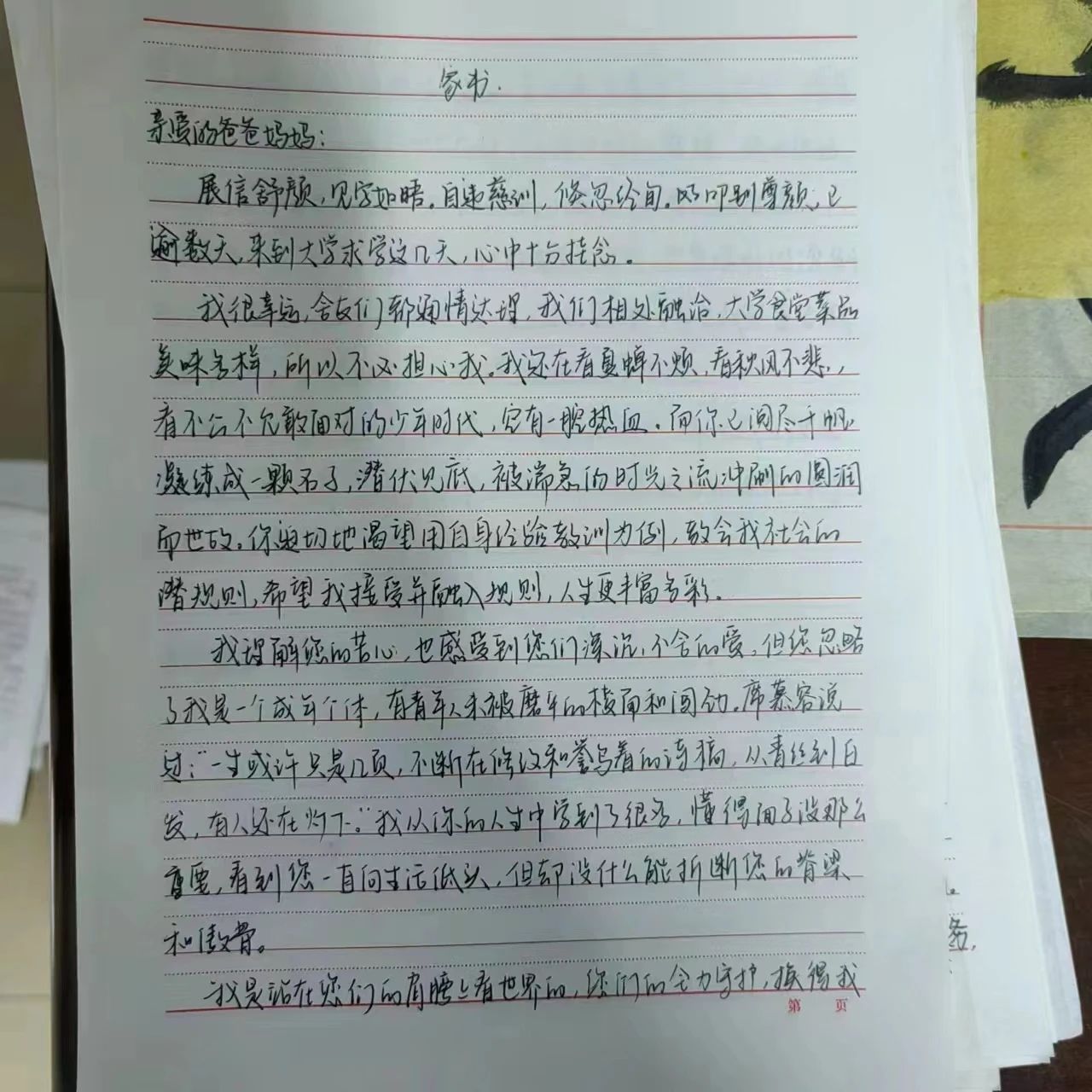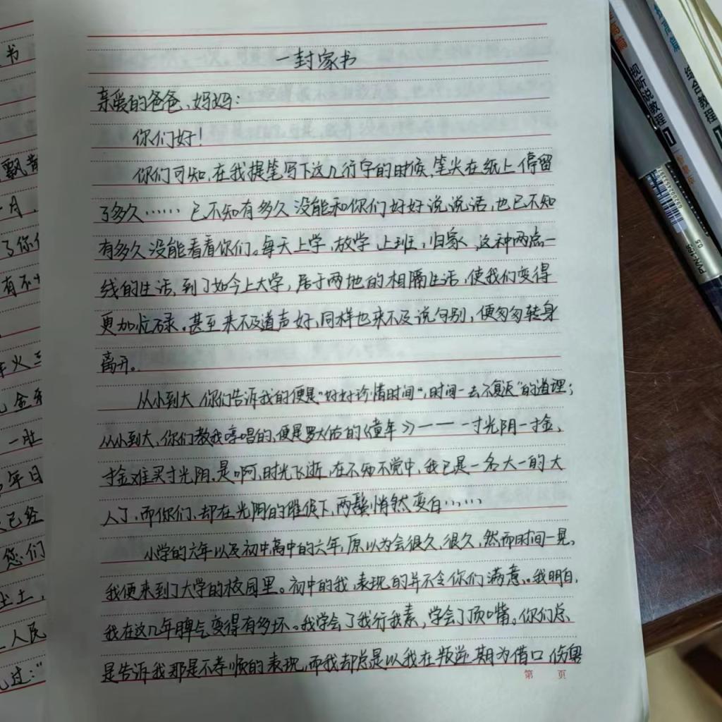 为大力弘扬新时代家庭观,推动形成爱国爱家的新风尚,进一步提高同学们在军训期间的积极性,贾思勰农学院举办了“一封家书”征文活动。