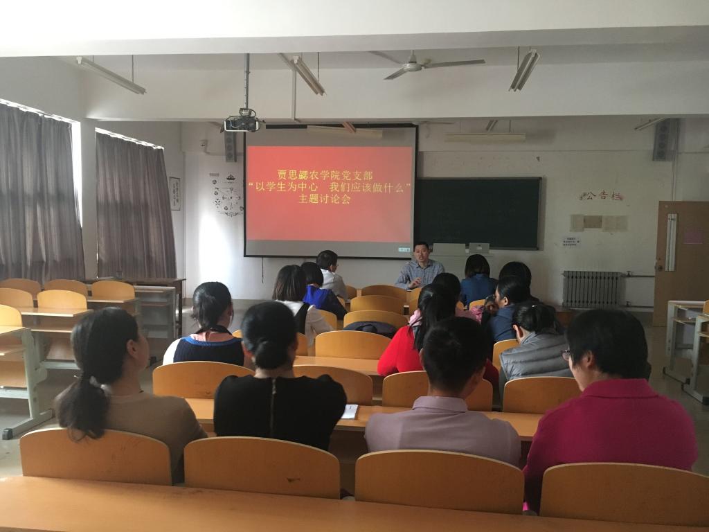 2018年4月3日下午,贾思勰农学院在208教室开展了“以学生为中心 我们应该做什么”主题讨论活动。活动由李培之书记主持,农学院全体教职工和全体党员参加。